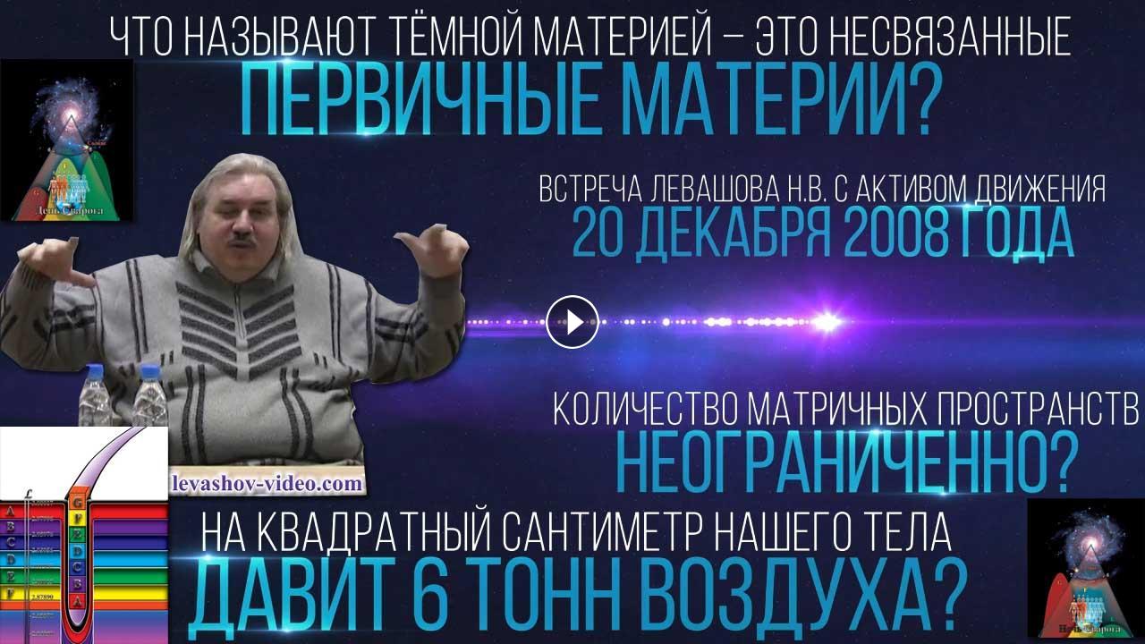 Отрывок из встречи Левашова Николая Викторовича с активом Движения 20.12.2008. № 13: 1:34:11 - 1:38:23. В ролике обработан звук, добавлена заставка, добавлены иллюстрации.