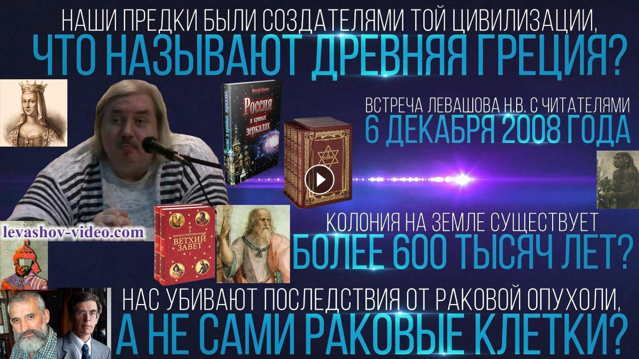 Отрывок из встречи Левашова Николая Викторовича с читателями 06.12.2008. № 5: 0:31:29 - 0:51:45. В ролике обработан звук, добавлена заставка, добавлены иллюстрации.