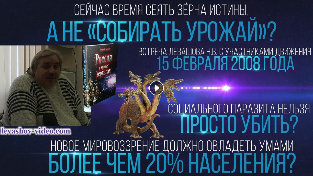 Отрывок из встречи Левашова Николая Викторовича с участниками Движения 15.02.2008. № 3: 0:22:29 - 0:29:00. В ролике обработан звук, добавлена заставка, добавлены иллюстрации.