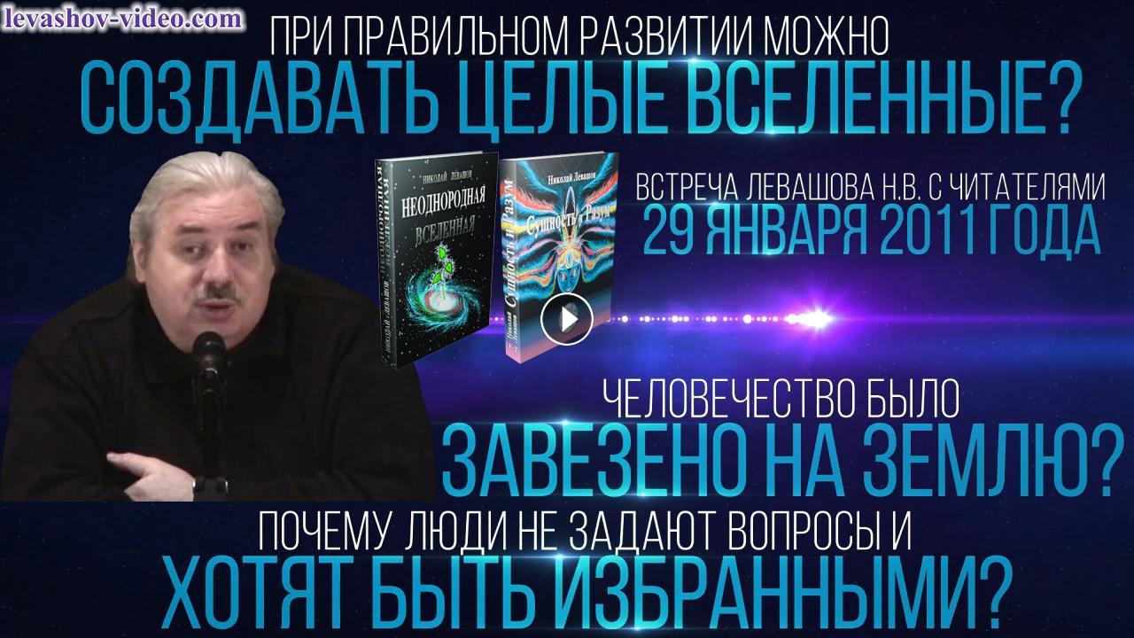 Отрывок из встречи Левашова Николая Викторовича с читателями 29.01.2011. № 19: 1:41:32 - 1:57:52. В ролике обработан звук, добавлена заставка, добавлены иллюстрации.