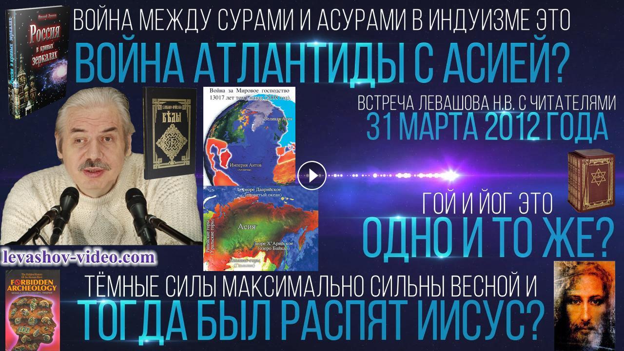 Отрывок из встречи Левашова Николая Викторовича с читателями 31.03.2012. № 7: 0:56:03 - 1:05:52. В ролике обработан звук, добавлена заставка, добавлены иллюстрации.