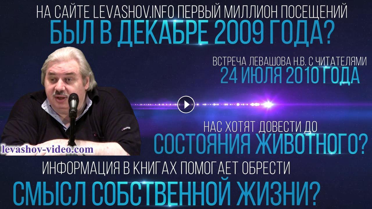 Сайт levashov.info был создан в ноябре 2004 года, миллион посетителей был 10 декабря 2009 года, 638 тысяч посещений, за полгода число посещений резко возросло, книги нужны людям, очень рад этому, приходит много писем, информация в книгах, понять что к чему, обрести смысл собственной жизни, молодёжь, особенно радует, человек был паразитом, живи ради самого себя, физиологические потребности, человек не просто животное, довести до состояния скотины, люди, недосягаемые для паразитов, бороться, достичь справедливости, не сделаем мы, некому будет делать.
