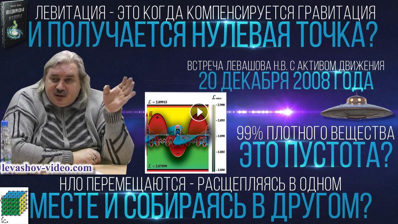 Отрывок из встречи Левашова Николая Викторовича с активом Движения 20.12.2008. № 20: 1:54:34 - 2:01:04. В ролике обработан звук, добавлена заставка, добавлены иллюстрации.