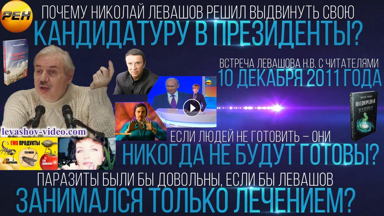 Отрывок из встречи Левашова Николая Викторовича с читателями 10.12.2011. № 2: 0:09:43 - 0:31:54. В ролике обработан звук, добавлена заставка, добавлены иллюстрации.