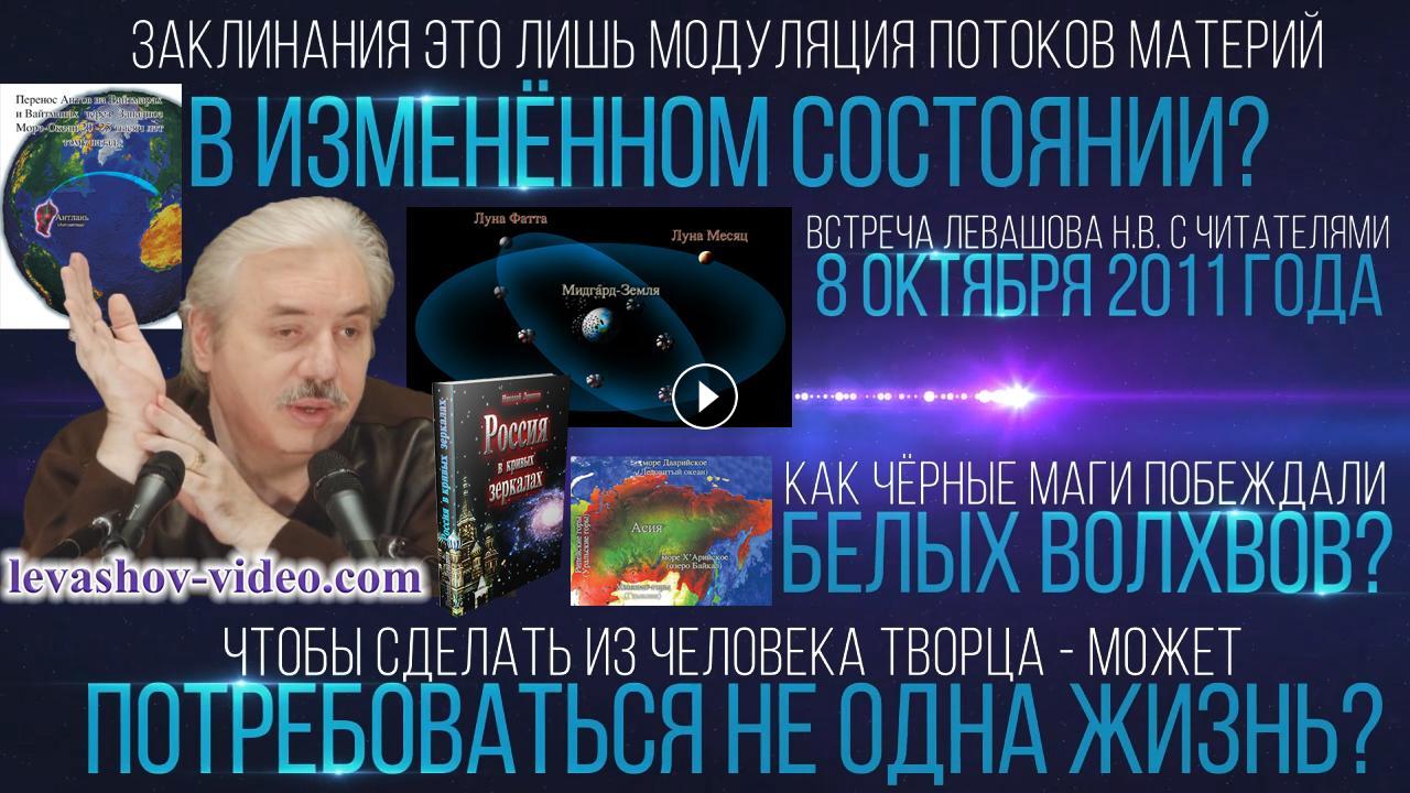 Отрывок из встречи Левашова Николая Викторовича с читателями 08.10.2011. № 5: 0:35:31 - 0:43:35. В ролике обработан звук и улучшена картинка с помощью нейросети, добавлена заставка, добавлены иллюстрации.