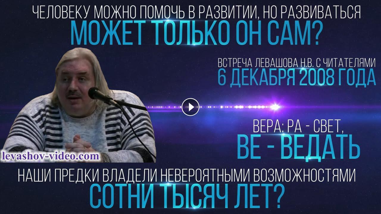 Отрывок из встречи Левашова Николая Викторовича с читателями 06.12.2008. № 18: 2:53:53 - 2:55:59. В ролике обработан звук, добавлена заставка.