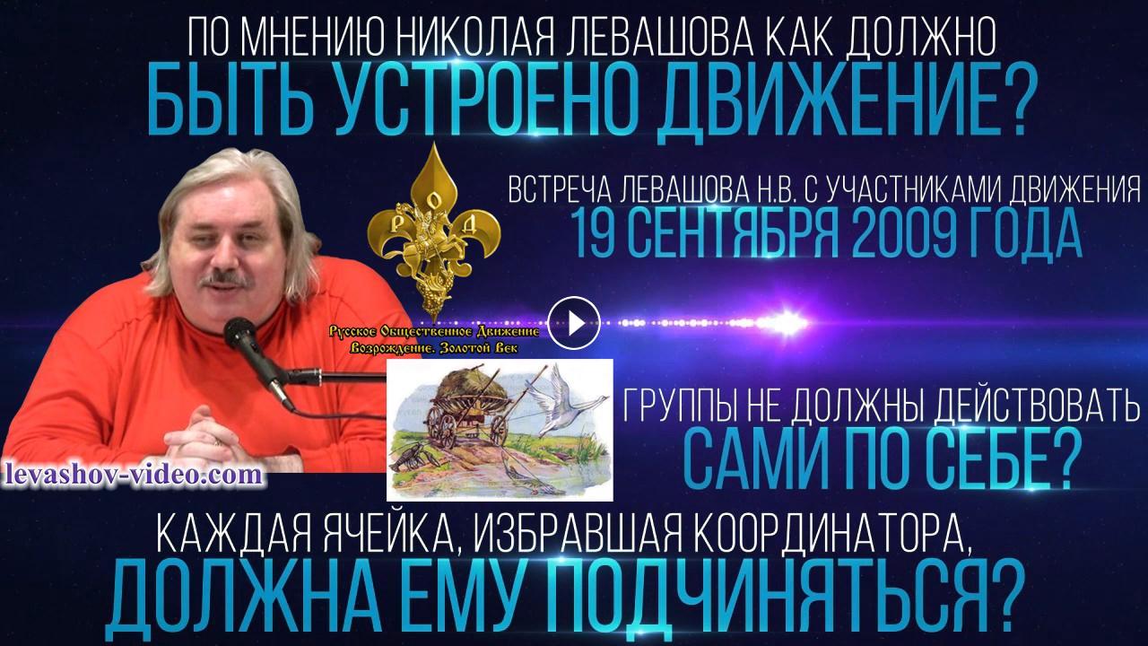 Отрывок из встречи Левашова Николая Викторовича с участниками Движения 19.09.2009. № 1: 0:00:35 - 0:07:22. В ролике обработан звук, добавлена заставка, добавлены иллюстрации.