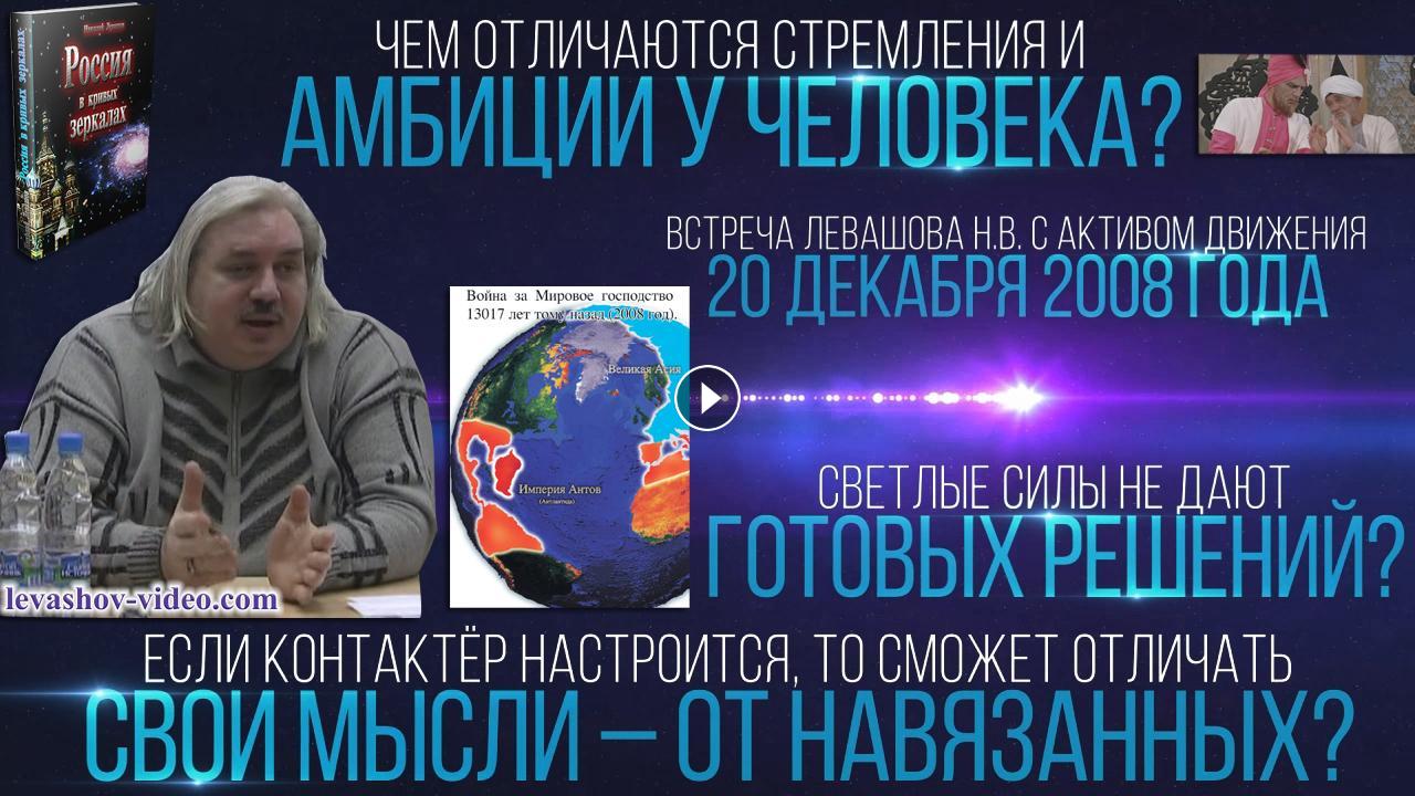 Отрывок из встречи Левашова Николая Викторовича с активом Движения 20.12.2008. № 2: 0:23:29 - 0:39:14. В ролике обработан звук, добавлена заставка, добавлены иллюстрации.