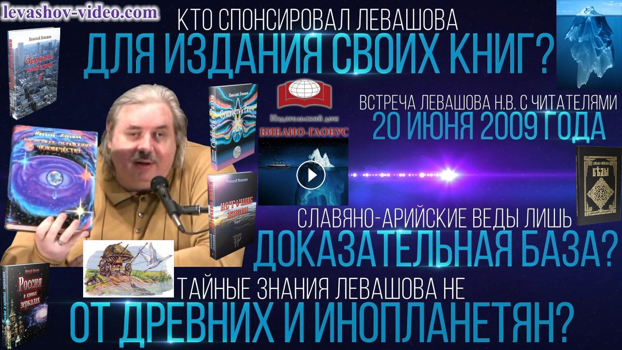 Отрывок из встречи Левашова Николая Викторовича с читателями 20.06.2009. № 1: 0:03:14 - 0:16:45. В ролике обработан звук, добавлена заставка, добавлены иллюстрации.