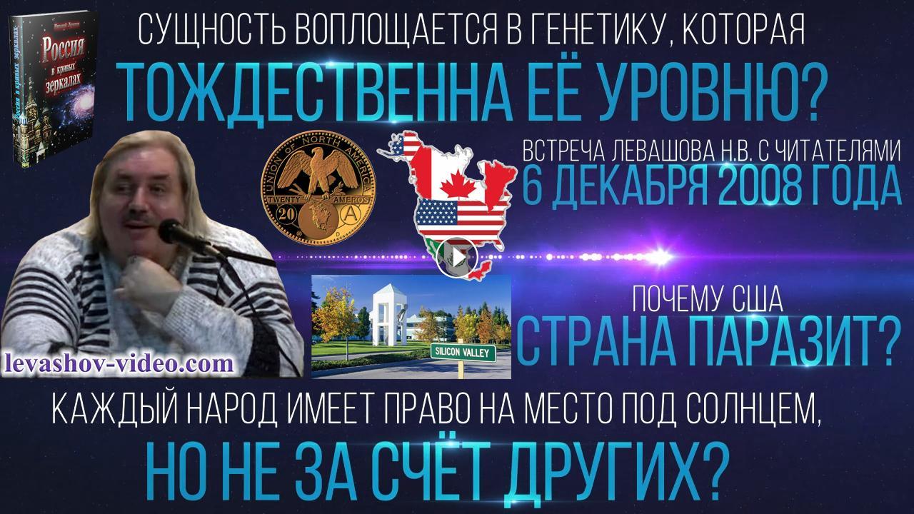 Отрывок из встречи Левашова Николая Викторовича с читателями 06.12.2008. № 9: 1:22:59 - 1:38:13. В ролике обработан звук, добавлена заставка, добавлены иллюстрации.