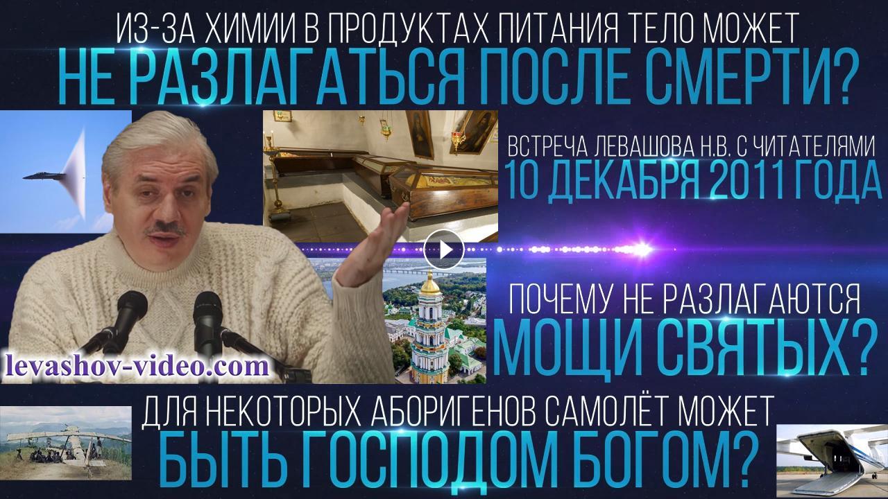 Отрывок из встречи Левашова Николая Викторовича с читателями 10.12.2011. № 14: 1:26:28 - 1:30:38. В ролике обработан звук и улучшена картинка с помощью нейросети, добавлена заставка, добавлены иллюстрации.