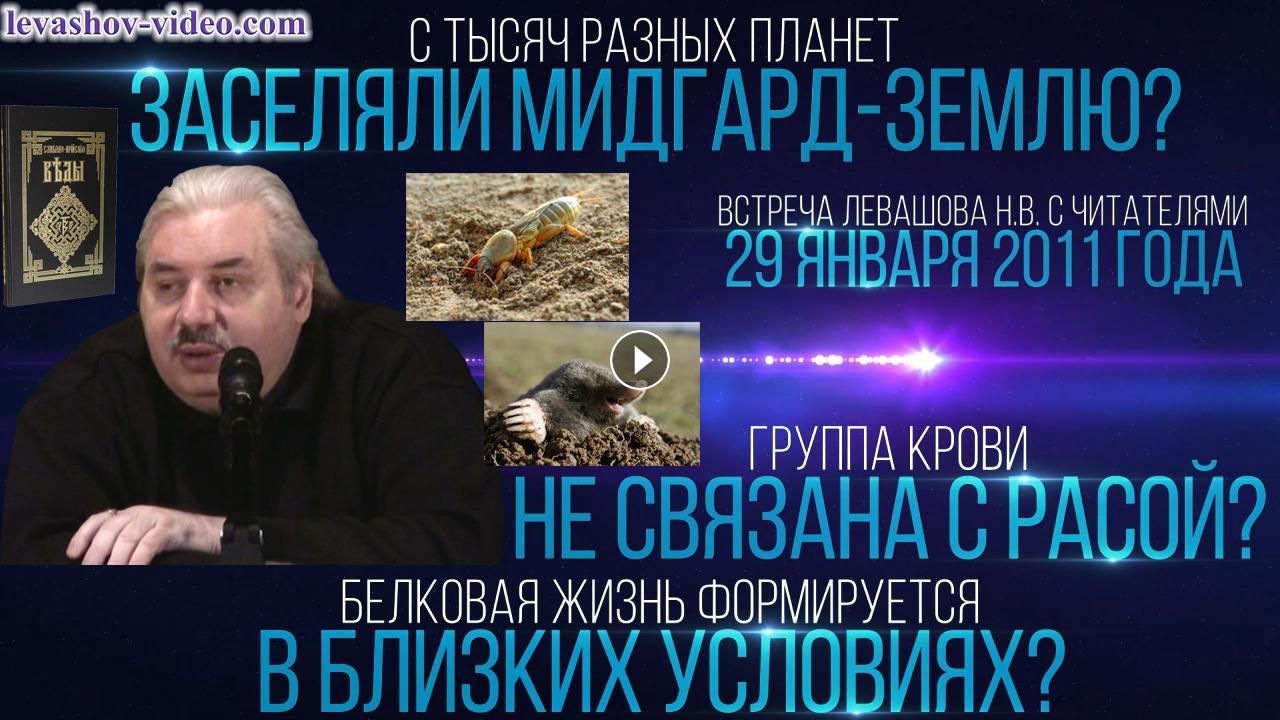 Отрывок из встречи Левашова Николая Викторовича с читателями 29.01.2011. № 11: 1:05:50 - 1:09:00. В ролике обработан звук, добавлена заставка, добавлены иллюстрации.