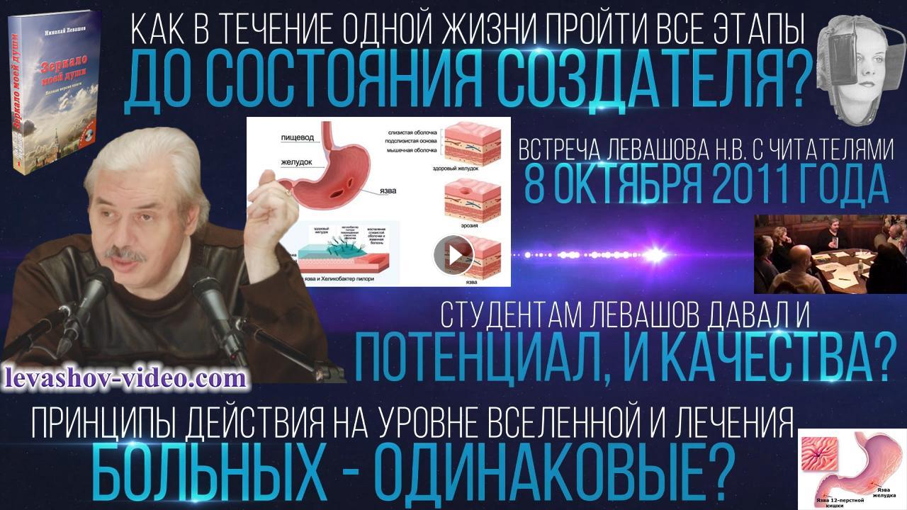 Отрывок из встречи Левашова Николая Викторовича с читателями 08.10.2011. № 11: 1:15:14 - 1:29:51. В ролике обработан звук и улучшена картинка с помощью нейросети, добавлена заставка, добавлены иллюстрации.