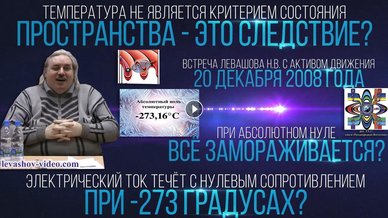 Возможна ли температура абсолютного нуля, -273 градуса, всё замораживается при абсолютном нуле, всё останавливается, всё движение, так говорит традиционная наука, сначала достигли бы, когда возникает явление сверхтекучести, когда электрический ток представляет нулевое сопротивление, сверхпроводимость, бесконечная электропроводность, при температуре близкой к абсолютному нулю, когда все должно заморозиться, оказывается возникает сверхтекучесть, понимаете – абсурд, это невежество, температура не является критерием состояния пространства, а это следствие, гибридные формы материй, мы привыкли, электроны добиваются сверхпроводимости при температуре близкой к нулю, можно добиться того же меняя текучесть материй.
