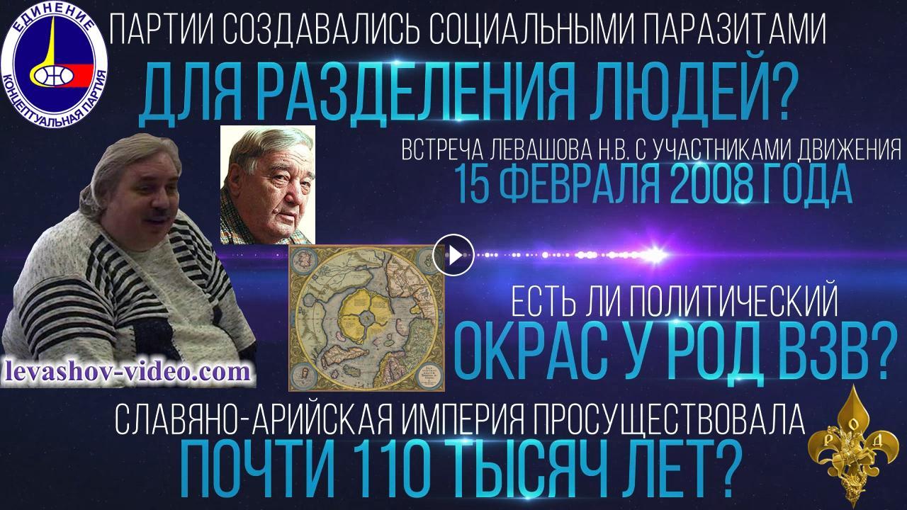 Отрывок из встречи Левашова Николая Викторовича с участниками Движения 15.02.2008. № 11: 1:31:21 - 1:40:28. В ролике обработан звук, добавлена заставка, добавлены иллюстрации.