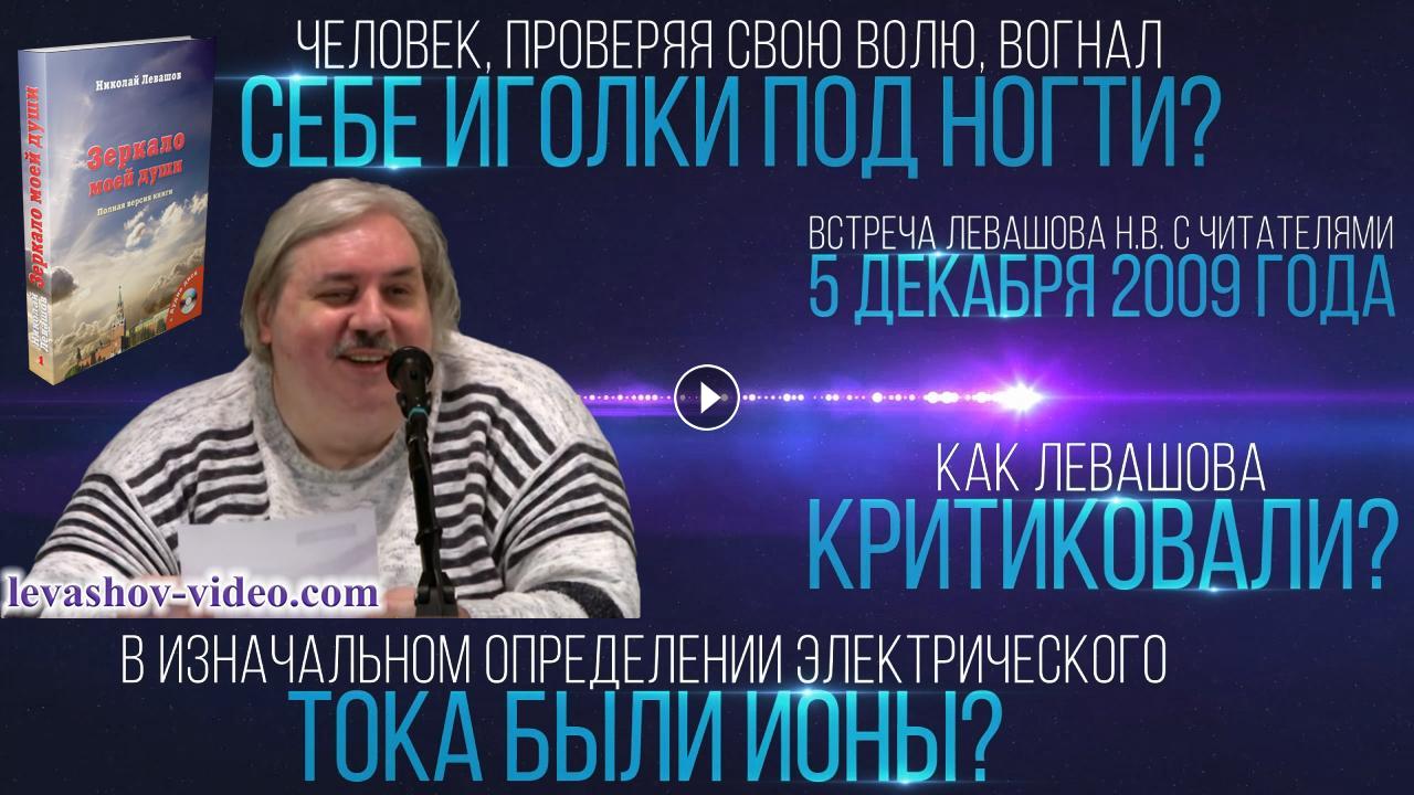 Отрывок из встречи Левашова Николая Викторовича с читателями 05.12.2009. № 2: 0:17:22 - 0:20:08. В ролике обработан звук, добавлена заставка, добавлены иллюстрации.