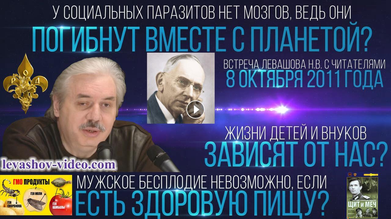 Отрывок из встречи Левашова Николая Викторовича с читателями 08.10.2011. № 1: 0:03:18 - 0:09:12. В ролике обработан звук и улучшена картинка с помощью нейросети, добавлена заставка, добавлены иллюстрации.