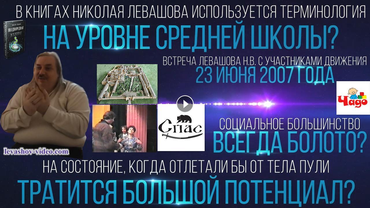 Отрывок из встречи Левашова Николая Викторовича с участниками Движения 23.06.2007. № 9: 1:45:48 - 2:03:11. В ролике обработан звук и улучшена картинка с помощью нейросети, добавлена заставка, добавлены иллюстрации.