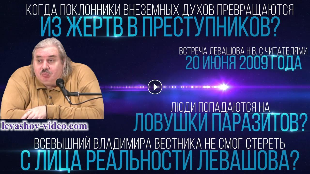Отрывок из встречи Левашова Николая Викторовича с читателями 20.06.2009. № 20: 1:52:59 - 1:56:14. В ролике обработан звук, добавлена заставка.