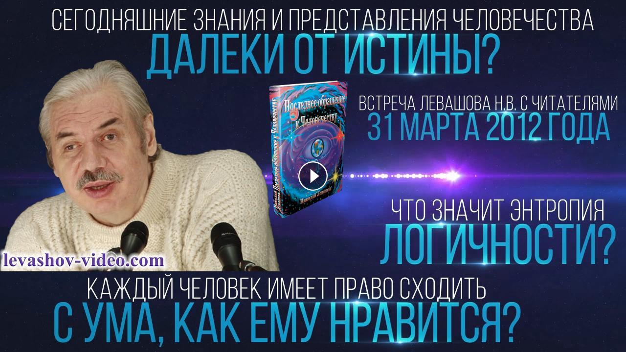 Отрывок из встречи Левашова Николая Викторовича с читателями 31.03.2012. № 20: 2:49:04 - 2:50:31. В ролике обработан звук, добавлена заставка, добавлены иллюстрации.