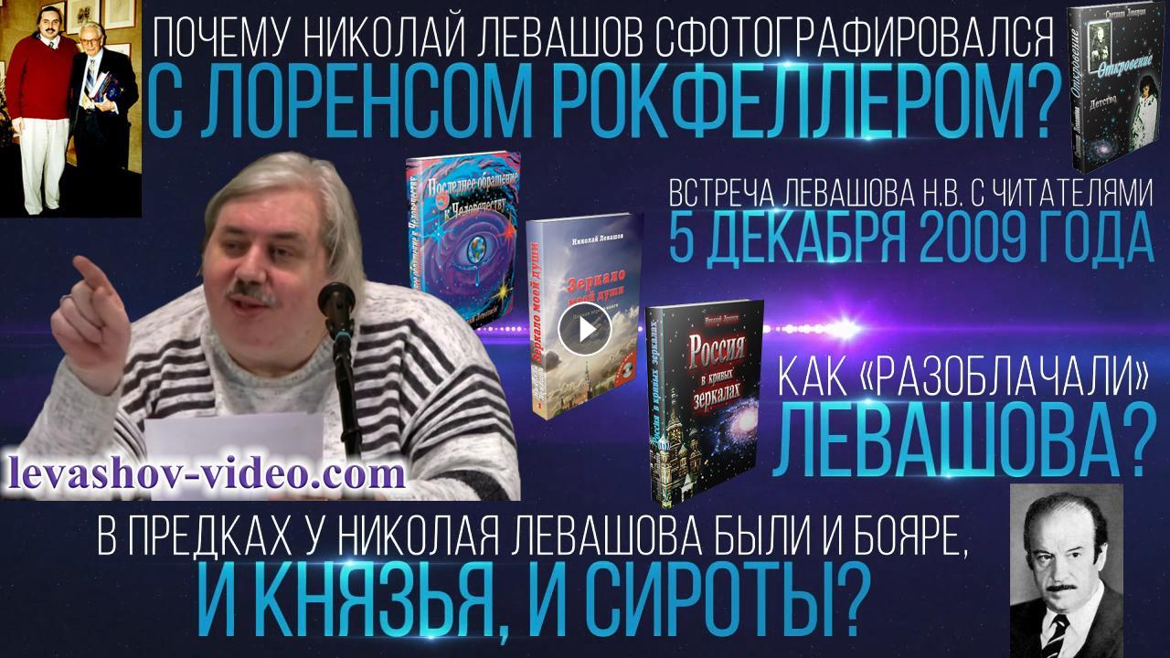 Отрывок из встречи Левашова Николая Викторовича с читателями 05.12.2009. № 1: 0:04:59 - 0:17:14. В ролике обработан звук, добавлена заставка, добавлены иллюстрации.