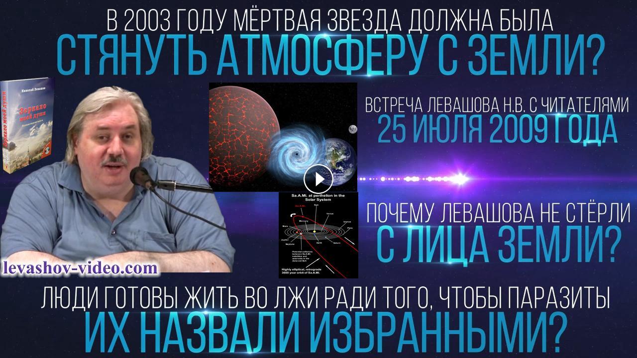 Отрывок из встречи Левашова Николая Викторовича с читателями 25.07.2009. № 25: 1:57:22 - 2:07:40. В ролике обработан звук, добавлена заставка, добавлены иллюстрации.